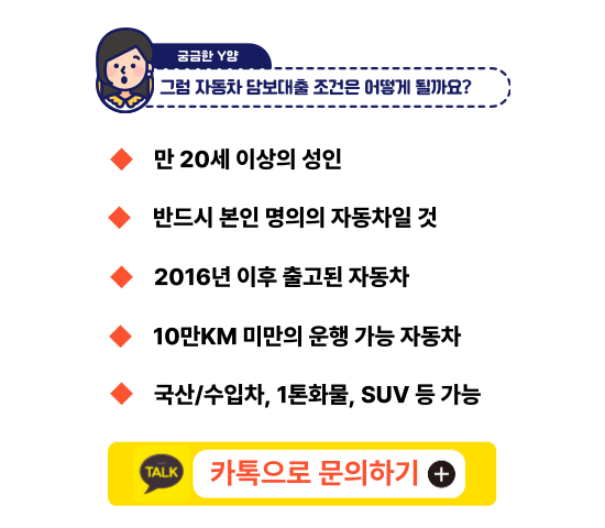 차량 연식, 시세, 사고 이력 등 여러 요소가 함께 고려되기 때문에 모든 차량이 담보로 인정되는 것은 아닐 수 있다. 일정 기준을 충족해야 가능성이 생기는 경우가 많다.
