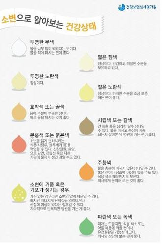 - 연한 노란색: 이 또한 충분한 수분 섭취에 의한 색으로 건강한 것으로 간주됩니다.