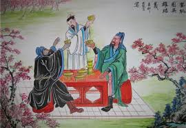 - 삼국 시대 초반, 유비(劉備), 관리(關羽), 장비(張飛)는 도원(桃園)에서 만납니다. 유비는 당시 아직은 무명한 지도자였지만, 이들 세 사람은 서로를 잘 알고 있었습니다.