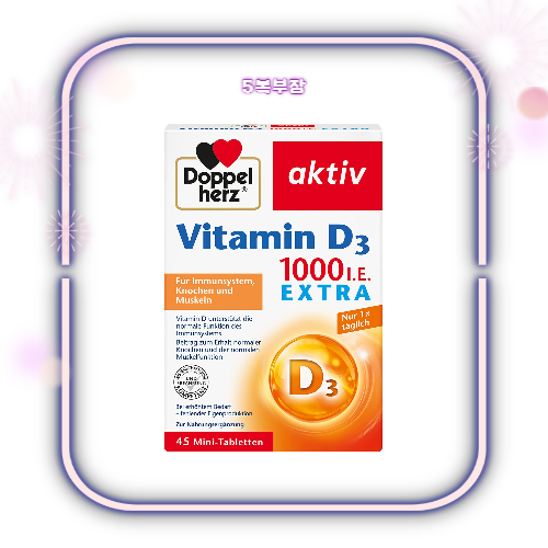 - 도펠헤르츠 비타민D 3 콜레칼시페롤 1000IU 45정은 세포 분열과 면역 체계의 정상적인 기능에 기여합니다.